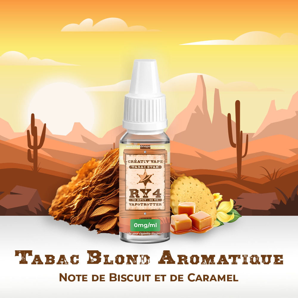 Découvrez l’e-liquide RY4 Tabac Blond de Créativ’Vape, un grand classique mêlant un tabac blond doux à de subtiles notes de vanille, biscuit et caramel.