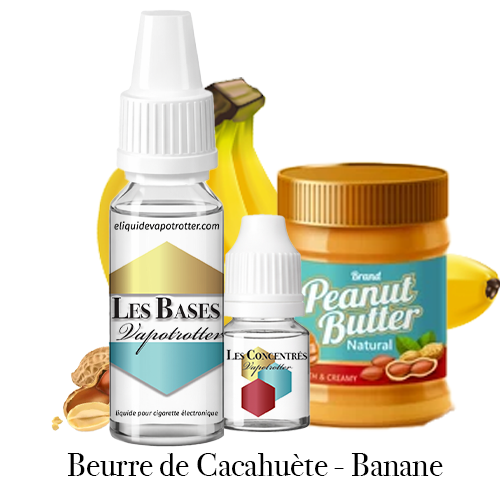Osez une vape gourmande, Beurre de Cacahuètes aromatisé à la Banane, un eliquide signé Vapotrotter. Taux de MPGV/VG au choix : 70/30 ou 50/50. Nouveauté, vous pouvez maintenant choisir aussi l’intensité de saveur ! Retrouvez-ici toutes nos saveurs gourmandes